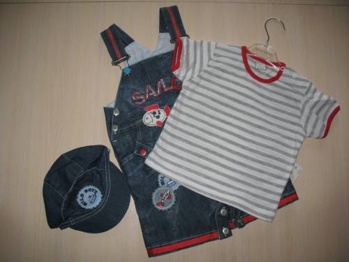 Джинсовый комбинезон+футболка+кепка